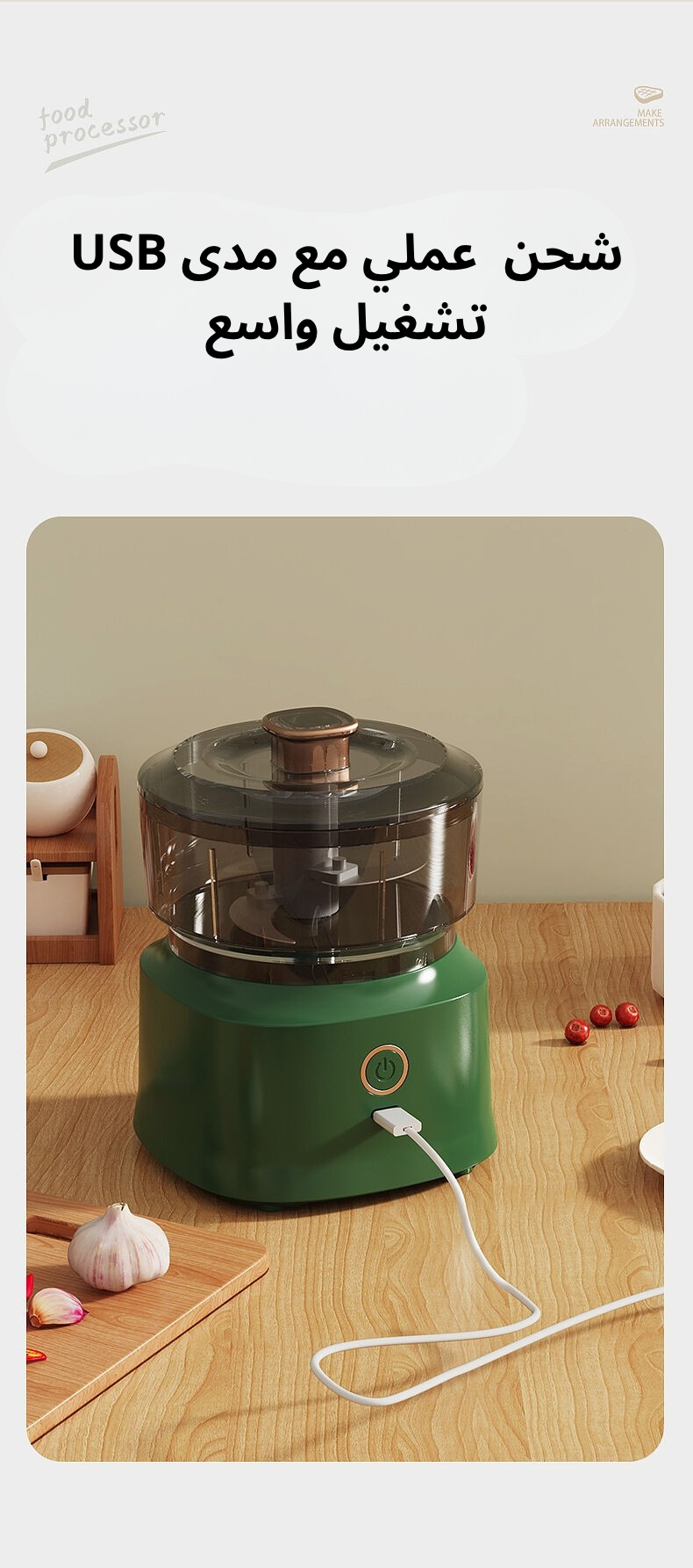 مفرمة متعددة الاستعمالات أوتوماتيكية، صغيرة للمطبخ بسعة 350 مل، شحن USB